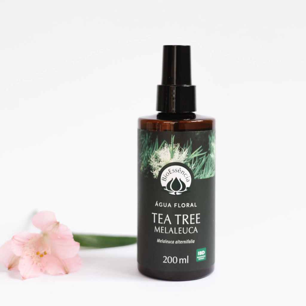 Água floral de Tea Tree (Melaleuca alternifolia) pronta para o uso, rica em princípios ativos da planta aromática, é um poderoso fungicida e bactericida. Excelente para uso na podologia, evita maus odores e auxilia nos tratos da micose e pé-de-atleta.