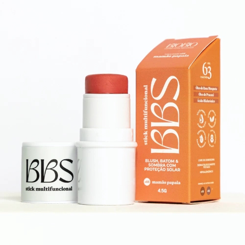 O BBS é um bastão multifuncional versátil que pode ser usado como blush, batom e sombra, proporcionando viço e fixação para a sua maquiagem. Com acabamento natural, confere um visual saudável e hidratado, com alta pigmentação e durabilidade e alta resistência à água.